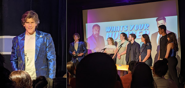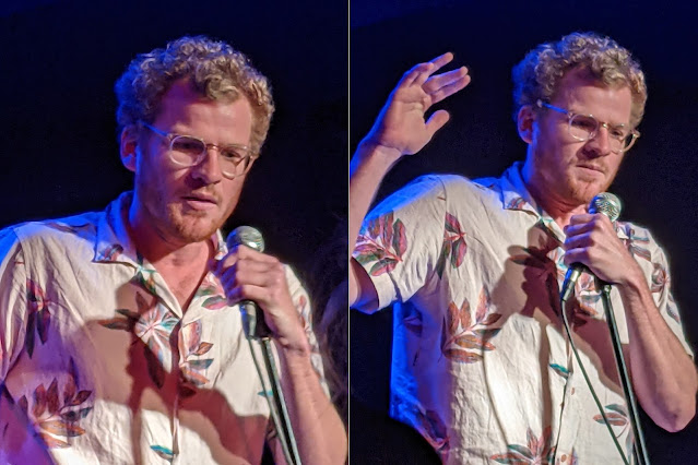 It had a massive 14 comics, ie, fast intense sets gave no time to be bored, and the big friendly crowd added to the fun, and that made it quite good. The problem with walk-in free comedy is that people walk in with no real interest in the comedy and can be disruptive, but with this book-ahead free comedy you kind-of know that the people want to be there and will give the comics a chance. There is going to be a cop-out here, and that's that I don't remember faces that well, ie, prosopagnosia. I'm also not going to remember names even if I could hear them being pronounced. What I do remember is gags, so I going to know the repeat routine before the face - lol -, ie, sorry if I don't mention some names. Lochlann McAllister - thank you The Laugh Inn for posting everyone's name and pic for reference - was the best on the night. I was just saying last week that you don't see Stella Wu much, and she turns up here with with a good headliner set. MC Jacob ? - didn't hear the name and don't think I've seen him before -, was equally as good as Stella. The French guy(pic 11) was good/interesting, simply because it was a different style of comedy. Alan Fang had moves like Jagger, and I don't mean like a dying fish on a riverbank™(Jack Wright) - lol -, more that he is unpredictable, ie, what I like. This time he didn't go for the easy/obvious stuff, ie, big boy stuff, and he even did some good crowd work that cock-blocked one poor guy - lol -. [Crowd : 4 - Me : 3.75] [T-$0 + F-$5 + C-$3]